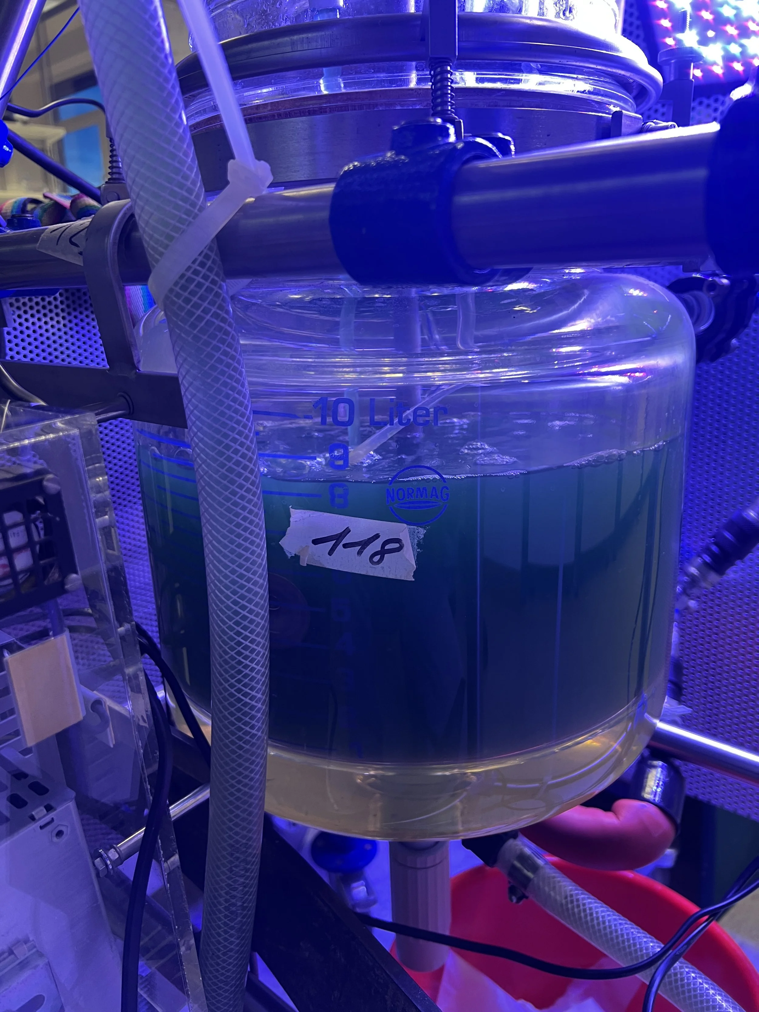 Beim erstem Versuch die Algen anzusetzen sind die Spirulina nach wenigen Tagen gestorben dadurch dass sie zu wenig Licht hatten.